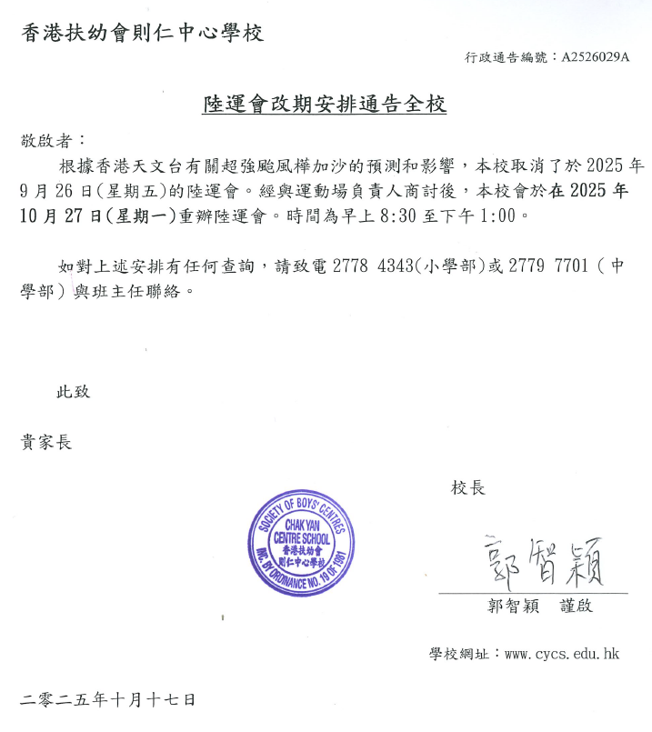 陸運會改期安排