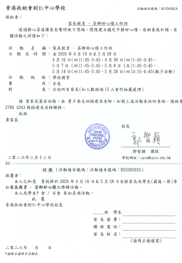 家長教育 - 茶聊好心情工作坊