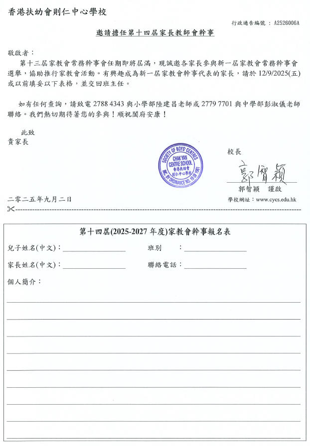 招募第十四屆家教會家長幹事