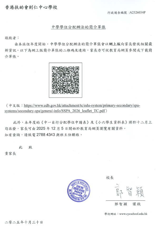 中學學位分配辦法的簡介單張