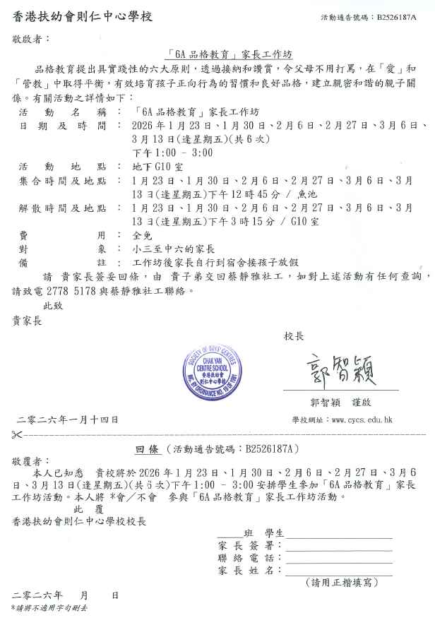 「6A品格教育」家長工作坊