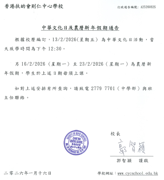 中華文化日及農曆新年假