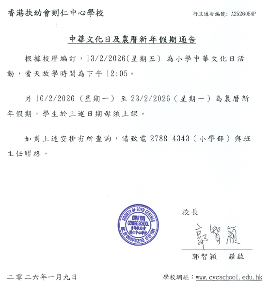 中華文化日及農曆新年假期